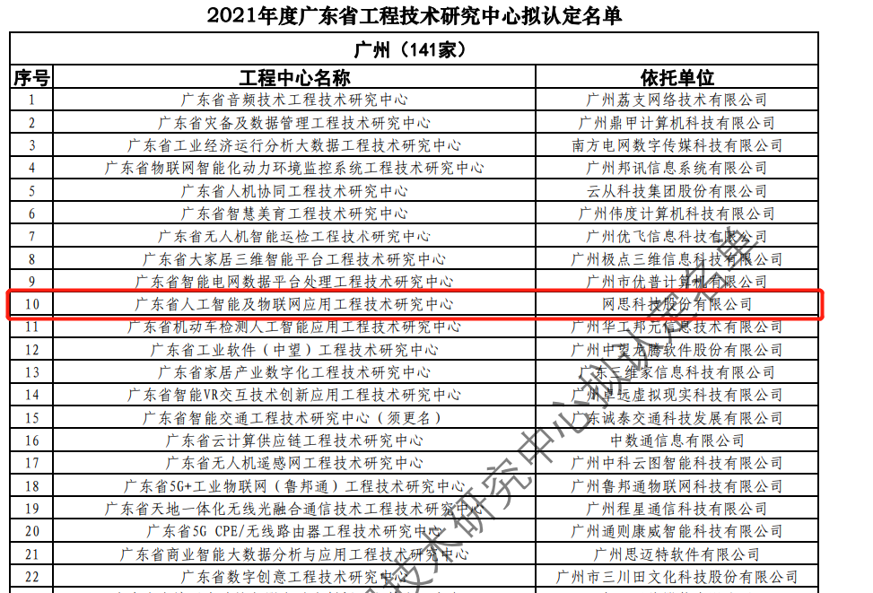 日前,广东省科技厅发布2021年度广东省工程技术研究中心名单。经过层层筛选、专家评审,依托世界杯网上注册入口_世界杯(中国),建设的“广东省人工智能及物联网应用工程技术研究中心”榜上有名。广东省工程技术研究中心主要依托省内行业、领域具有科技实力的、拥有一定规模以上创新型企业建设,部分依托高校和科研院所组建。工程中心旨在